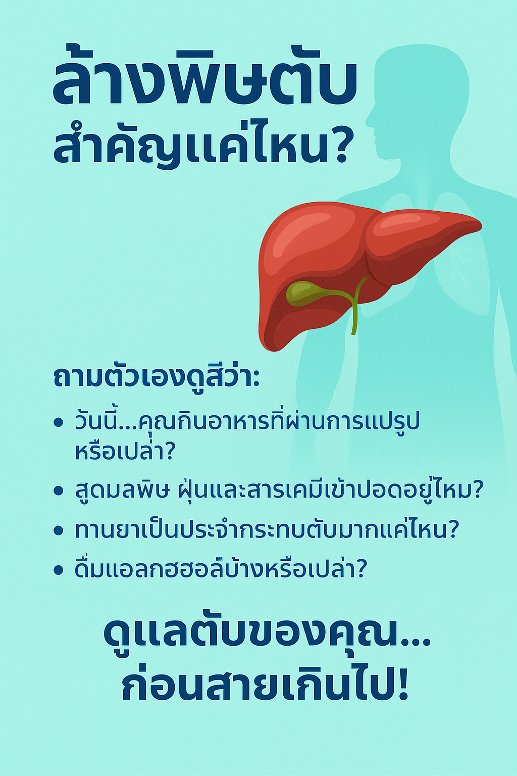 คุณเคยถามตัวเองไหมว่า… "ตับของเราต้องล้างพิษจริงหรือ?" และถ้าไม่ล้าง มันจะเกิดอะไรขึ้น? ตับ คือโรงงานล้างสารพิษที่ใหญ่ที่สุดในร่างกาย ทำงานหนักทุกวันเพื่อกำจัดแอลกอฮอล์ ยาเคมี อาหารแปรรูป ไขมันส่วนเกิน รวมถึงโลหะหนักที่เราสัมผัสโดยไม่รู้ตัว แต่คำถามสำคัญคือ ตับของคุณยังแข็งแรงพอไหม? หลายคนเข้าใจผิดว่าตับดูแลตัวเองได้ตลอดเวลา แต่ในความจริง เมื่อเราสะสมพิษมากเกินไป (โดยเฉพาะจากอาหาร น้ำมันทอดซ้ำ แอลกอฮอล์ หรือยาบางชนิด) เซลล์ตับจะค่อยๆ เสื่อม การทำงานจะช้าลง ทำให้เกิดไขมันพอกตับ ตับอักเสบ หรือแย่ที่สุดคือพังผืดและตับแข็ง! การล้างพิษตับจึงไม่ใช่แค่เทรนด์ แต่เป็นการให้โอกาสตับได้ฟื้นฟูตัวเอง เช่น การเสริมด้วยอาหารที่มีสารต้านอนุมูลอิสระ เช่น กลูตาไธโอน ซิสเทอีน อาร์ติโช๊ค และสารสกัดสมุนไพรบางชนิด ช่วยให้ตับกลับมาทำงานได้เต็มประสิทธิภาพ และที่ท้าทายที่สุด… คุณกล้าหรือยังที่จะเริ่มดูแลตับตั้งแต่วันนี้?เพราะถ้าคุณไม่ล้างพิษตับ วันนี้ ร่างกายของคุณจะต้องจ่ายราคาแพงในวันหน้า! อย่ารอให้สายเกินไป ดูแลตับตั้งแต่ตอนนี้ เพื่อชีวิตที่มีพลังและสุขภาพที่ยั่งยืน